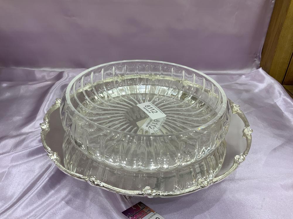 صحن تقديم نحاس مطلي فضه قطر ٢٣ سم