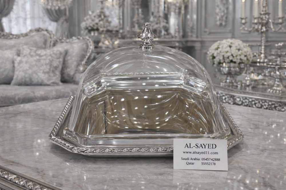 صحن سلفر بغطاء كريلك. صغير طول عرض ٢٠ سم