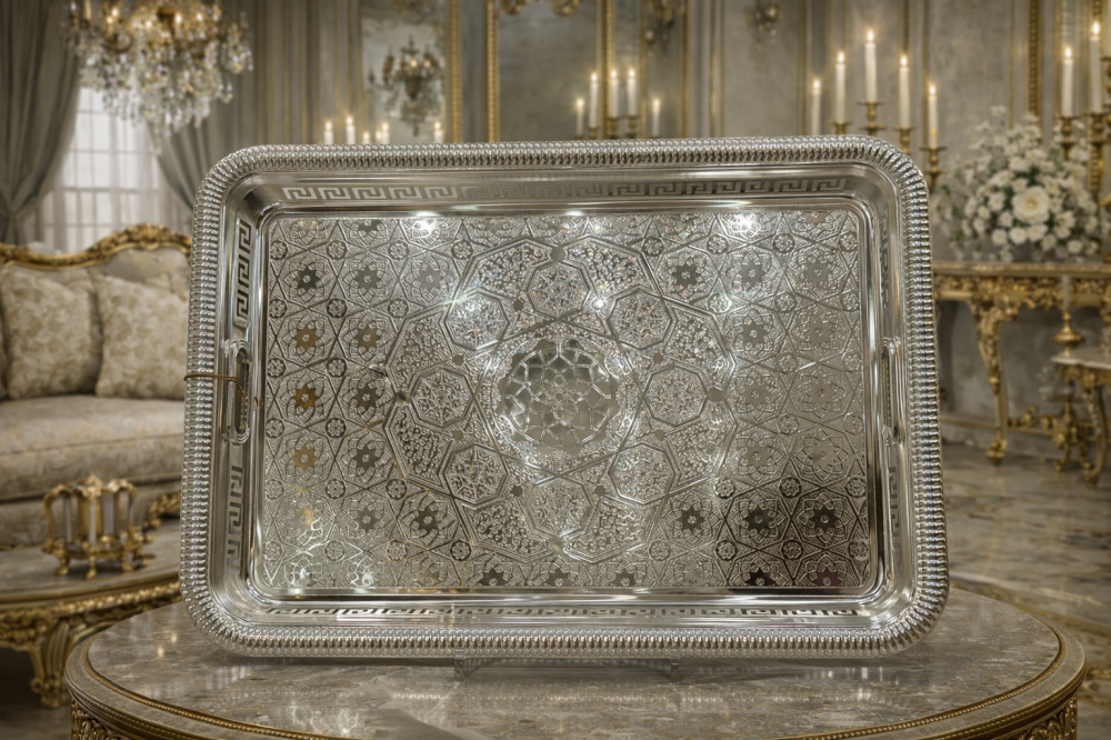 صينيه فضي كبير طول ٥٠ سم عرض ٣٥ سم