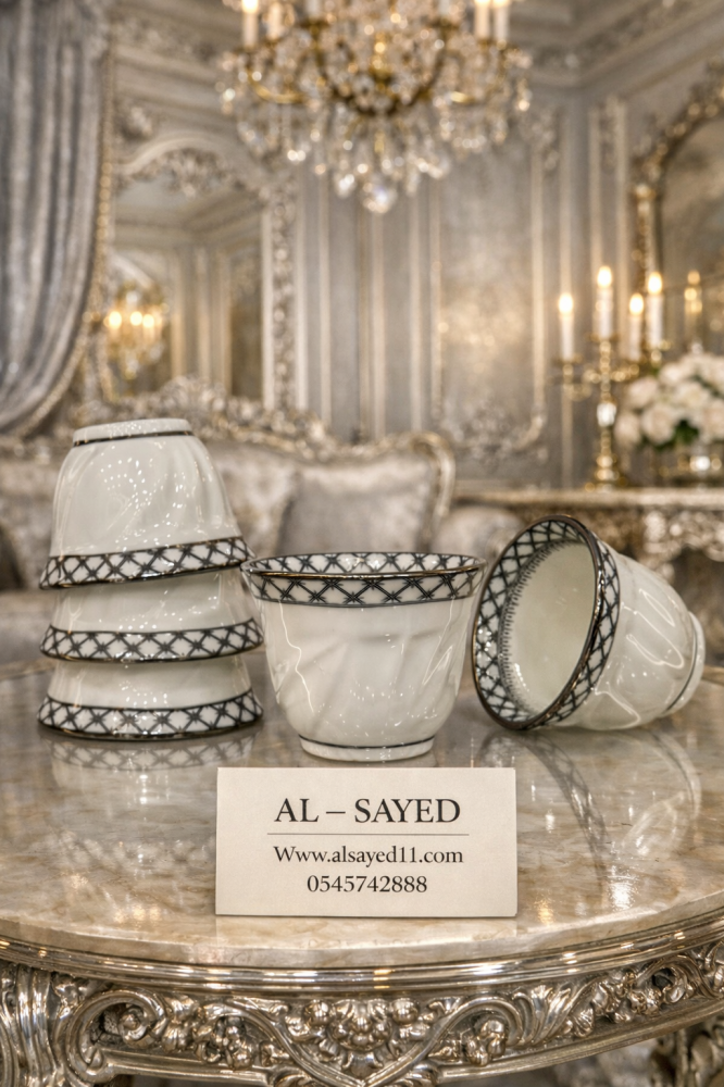 فناجيل بورسلان ايطار فضي ١٢ قطعه