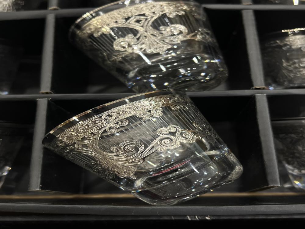 فناجيل كريستال فضي ليزر ١٢ قطعه
